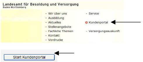 1. Gehen Sie auf die Internetseite (https://lbv.landbw.de/kundenportal) oder Intranetseite (http://intranet.lbv.bwl.de) des