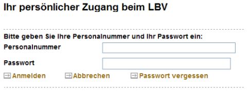 3.Bitte geben Sie Ihre 8-stellige Personalnummer und ihr Passwort für das Kundenportal des LBV ein.