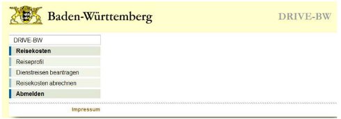 „Dienstreise-Management“. Klicken Sie auf diesen Button um DRIVE-BW zu öffnen.